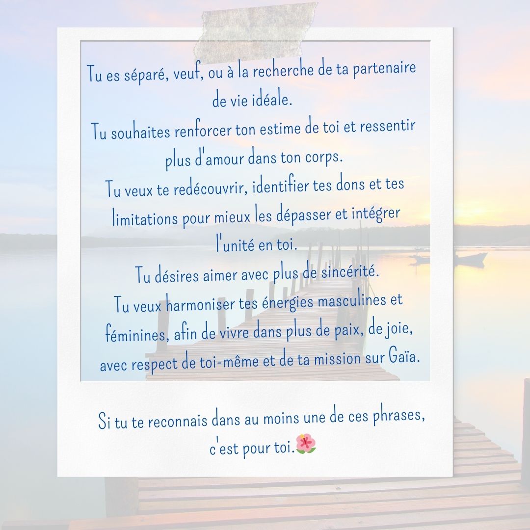 Si tu souhaites te libérer des traumas relationnels et émotionnels tout en reconnectant avec ta pureté intérieure pour attirer l'amour sincère et aligné.